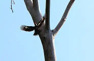 ![]() نقار خشب ذو عرف من الذكور يقف على شجرة. | |