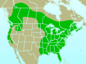 يمتد الموطن الأساسي لهذه الطيور عبر الأراضي الغابيّة في كندا مروراً بشرق الولايات المتحدة وأجزاءٍ من سواحل المحيط الهادئ. تحبّذ هذه الطّيور العيش في الغابات المعمّرة والحدائق كثيفة الأشجار، على أن تكون معتدلة الرطوبة.