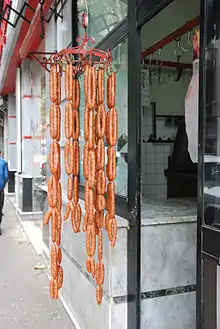 - بالعبرية נקניק [nak'nik]، ويقال كذلك المقانق واللقانق (N. Nasrallah؛ M. Ahsan) وقيل أنها من اللاتينية Lucanica وهي نسبة للوكانيا (S. D. Goitein) نسخة محفوظة 11 أكتوبر 2013 على موقع واي باك مشين.