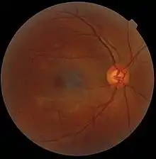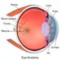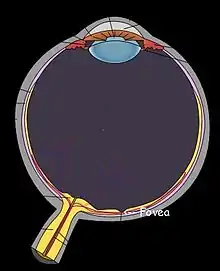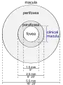![]() صورة توضيحية لعين الإنسان، وتظهر النقرة المركزية في الأسفل. | |