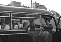 يقوم حراس ألمانيا الشرقية بفحص تصاريح ركاب الحافلة الذين يعبرون نقطة التفتيش في أكتوبر ، بعد بناء الجدار مباشرة في 13 أغسطس 1961