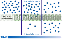 يمكن للجزيئات الصغيرة برغم قطبيتها (مثل الماء والإيثانول) العبور بحرية عبر الغشاء الخلوي ولكن ببطء، كذلك يمكن لبعض الجزيئات الكبيرة غير القطبية (مثل البنزين) العبور برغم كبر حجمها ببطء أيضًا. الجزيئات الكبيرة والقطبية (مثل الجلوكوز) أو المشحونة (مثل أيونات الصوديوم أو الأحماض الأمينية) لا يمكنها العبور عبر الغشاء بخاصية الانتشار، لكن يتم نقلها بما يسمَّى بالانتشار المُيَسَّر.