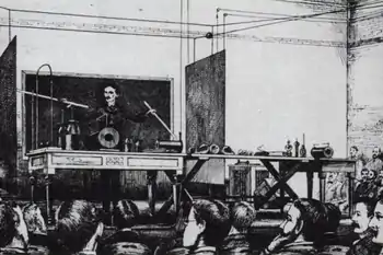 - 1893: نيكولا تسلا يؤدي عرضاَ يقوم فيه بإضاءة مجموعة من مصابيح الإضاءة لاسلكياَ.