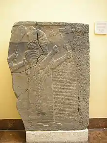 - إلى ملك آشور فجعله ملكًا على بيت أبيه وأنهى "حجر الدمار" من بيت أبيه[…...….] من خزائن بيوت بلاد يأدي. من […...….]