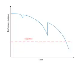تقليديا، تستخدم معظم البلديات منحنيات التدهور لنمذجة التدهور.[5] في الآونة الأخيرة، تم تقديم أساليب أكثر تعقيدًا تعتمد على المحاكاة ونماذج ماركوف ونماذج التعلم الآلي. يسمى نموذج معروف لإظهار احتمال فشل الأصول طوال حياته منحنى معدل الإخفاق. يتكون هذا المنحنى من ثلاث مراحل رئيسية: فشل الرضيع، الفشل المستمر، وفشل التآكل. في إدارة أصول البنية التحتية، يكون النمط السائد من التدهور بسبب الشيخوخة وحركة المرور والسمة المناخية. وبالتالي، فإن الفشل الذائب هو الأكثر إثارة للقلق.[6][7]