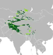 ![]() الموطن الحالي لِنمر الثُلوج | |