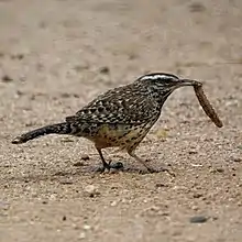 |CitationClass=تم تجاهله (مساعدة) - "Animal Fact Sheet: Cactus Wren". Arizona-Sonora Desert Museum. 2008. مؤرشف من الأصل في 17 فبراير 2019. اطلع عليه بتاريخ 13 فبراير 2019. الوسيط