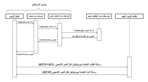 - يطلب عميل الويب خدمة تصفّح موقع الويب المُحدد بالعنوان من مُخدّم الويب البعيد.