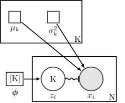 يبدو نموذج الخليط البايزي النموذجي مع الملاحظات الفئوية كما يلي: