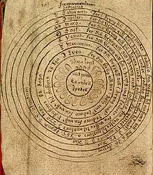 لم يتم اختراع أو تقديم هذا الترتيب على يد بطليموس، إلا أنه يتفق مع السماوات السبع في علم الكونيات الديني والشائع في التقاليد الدينية الأوروأسيوية.