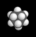 نموذج ملء الفراغ لجزيء الهكسان الحلقي C6H12. واضح أن ذرات الكربون الرمادية قد تم تغطيتها جزئيا بذرات الهيدروجين البيضاء.