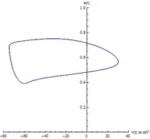 - خطأ رياضيات (خطأ في الصياغة): {\displaystyle I = C_m�rac{{\mathrm d} V_m}{{\mathrm d} t} + g_K(V_m - V_K) + g_{Na}(V_m - V_{Na}) + g_l(V_m - V_l)}