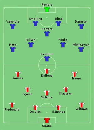 أقيمت المباراة في يوم 24 مايو 2017 على استاد فريندز أرينا الواقع بمدينة سولنا السويدية.[1] وفاز مانشستر يونايتد بالمباراة بنتيجية 2–0 على أياكس ليتأهل للعب تصفيات دوري أبطال أوروبا 2016-17، بينما سيلعب أيضاً مباراة كأس السوبر الأوروبي 2017 ضد الفريق الفائز بلقب دوري أبطال أوروبا 2016-17.