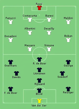 كان مدرب أياكس أمستردام في ذلك الوقت هو الهولندي لويس فان خال، وكان مدرب إيه سي ميلان هو الإيطالي فابيو كابيلو، أجرى كل من الفريقين تغييرات في محاولة منهما لإحراز الأهداف، فقد كان معظم التغييرات في خط الهجوم، سجل المهاجم البديل الهولندي باتريك كلايفرت هدفا لأياكس أمستردام في الدقيقة الـ84 مما أدى إلى فوز أياكس أمستردام، وتتويجه باللقب للمرة الرابعة في تاريخه.