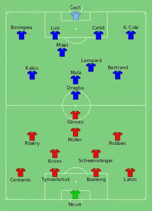 - "Full Time Report, Final – Saturday 19 May 2012" (PDF). الاتحاد الأوروبي لكرة القدم. 19 مابو 2012. مؤرشف من الأصل (PDF) في 07 مارس 2016. اطلع عليه بتاريخ 18 مايو 2015. الوسيط