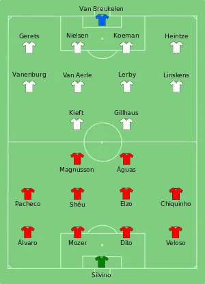 | 4–1 | 2–1 (خ) | 2–0 (د) | دور الـ 16 | 1–0 | 0–0 (خ) | 1–0 (د) | ||