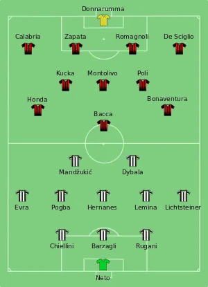 منذ فوز يوفنتوس بالدوري الإيطالي 2015–16، ضمن ميلان مكانه في كأس السوبر الإيطالي 2016.[2]