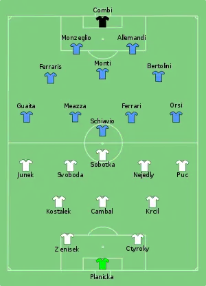 التقى المنتخب الإيطالي نظيره التشيكوسلوفاكي في نهائي كأس العالم لكرة القدم في إيطاليا بتاريخ 10 يونيو عام 1938 ، والتي حضرها جمهور قدر بنحو 45 ألف متفرج، وفازت إيطاليا باللقب لتصبح أول منتخب أوروبي يحصل على الكأس العالمية وثاني منتخب دولي، وقد حازت المباراة على الإعجاب من جانب الجمهور الإيطالي والحكومة الإيطالية .