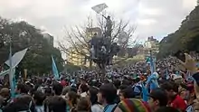 وعلى الطرف الآخر كان هناك مزيج من المشاعر عبر عنها الشارع الأرجنتيني بعد انهيار حلم الفوز بكأس العالم، حيث جمع بين الحزن على لقب مهدور والفرحة بمركز ثان والغضب الذي ترجم إلى أعمال شغب، وكان عشرات الآلاف من المشجعين تدفقوا إلى ساحة «بلازا دي لا ريبوبليكا» حيث مسلة بوينس آيرس التاريخية، وهو المكان الرمزي للاحتفالات الكبرى في الأرجنتين، ملوحين بعلم البلاد ومطلقين الألعاب النارية وهتافات تشيد باللاعب ليونيل ميسي ورفاقه رغم الخسارة أمام ألمانيا واستمر الشبان الأرجنتينيون بالاحتفال.