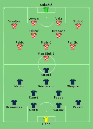 |CitationClass=تم تجاهله (مساعدة) - "Tactical Line-up – Final – France v Croatia" (PDF). FIFA.com. Fédération Internationale de Football Association. 15 July 2018. مؤرشف من الأصل (PDF) في 10 سبتمبر 2018. اطلع عليه بتاريخ 15 يوليو 2018. الوسيط