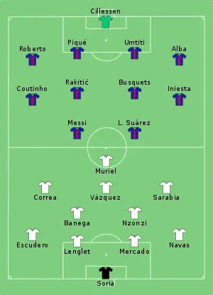 - "Sevilla 0-5 Barcelona". BBC Sport (باللغة الإنجليزية). 2018-04-21. مؤرشف من الأصل في 30 يونيو 2018. اطلع عليه بتاريخ 22 أبريل 2018. الوسيط