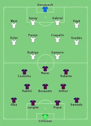 لعب برشلونة النهائي رقم 41 له في كأس الملك، مما مدد جعله يمدد رقمة القياسي، وفاز بسجل باللقب 30 مرة وهو رقم قياسي أخر. كانوا حاملوا اللقب بعد أن هزموا إشبيلية 5–0 في نهائي 2018. كانت هذه المباراة هي النهائي السادس على التوالي لبرشلونة، ليعززو الرقم القياسي الذي حققوه في الموسم السابق، وكانوا يبحثون عن اللقب الخامس على التوالي، وهو إنجاز لم يتحقق من قبل (فقط ريال مدريد وأتلتيك بيلباو سبق لهما أيضًا الفوز بأربعة ألقاب متتالية).[5]