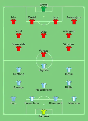 - "Match 32 : Argentina vs Chile". كوبا أمريكا المئوية. 26 June 2016. مؤرشف من الأصل في 19 ديسمبر 2016. اطلع عليه بتاريخ 26 يونيو 2016. الوسيط