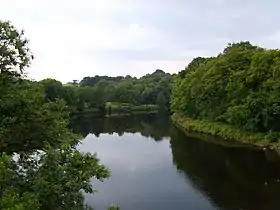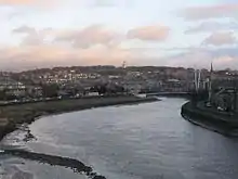 منظر النهر في لانكستر من أحد الجسور، ويظهر جسر الألفية