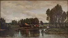 لوحة للقوارب بنهر الواز بواسطة تشارلز فرانسوا دوبيني.