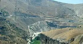 نهر اليرموك ويظهر جسر سكة حديد الحجاز المدمر