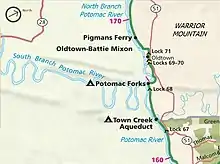 |CitationClass=تم تجاهله (مساعدة) - Topographic map of the confluence of the North and South branches of the Potomac River نسخة محفوظة March 12, 2007, على موقع واي باك مشين.