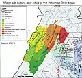 الأحواض الفرعية والمدن الرئيسية لحوض نهر بوتوماك[8]