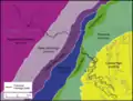 خريطة توضح الأقاليم الجيولوجية الخمس التي يتدفق من خلالها نهر بوتوماك[9]