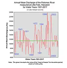| الروافد | بالقرب Washington, D.C. (non-tidal; water years: ليتل فولز [الإنجليزية] 1931–2018)[1] |