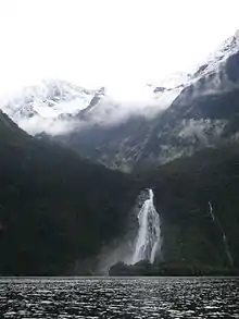 جنوباً لمسافة 8 كم قبل أن يصنع شلال السيدة فوين Lady Bowenعلى ارتفاع 162 متر التي تصب في رأس ميلفورد Milford Sound, الشلال سُمي باسم ديامنتينا بوين Diamantina Bowen زوجة جورج بوين George Bowenالحاكم الخامس لنيوزيلندا.