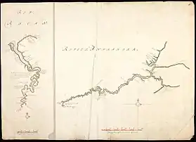 ![]() خريطة لنهري روكان (يسار) واندراجيري من قبل إسحاق دي غراف، حوالي 1690-1743. | |