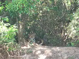 جاغوار أونزا المرقط يستريح على ضفاف نهر ساو لورنسو في بانتانال .