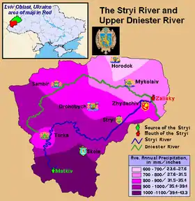 - "Stryi River". www.encyclopediaofukraine.com. مؤرشف من الأصل في 04 أكتوبر 2020. اطلع عليه بتاريخ 04 أكتوبر 2020. الوسيط