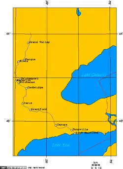 |CitationClass=تم تجاهله (مساعدة) - A Map: the Six Nations' opinion of the location of the disputed 1784 Haldimand Tractنسخة محفوظة 2012-04-26 على موقع واي باك مشين., reclamation.kisikew.org