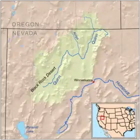 نهر كوين هو أكبر نهر في المنطقة، يبدأ في سلسلة سانتا روزا وينتهي في حوض نهر كوين على بلايا جنوب جبال بلاك روك. يغطي مستجمع المياه 11,600 ميل مربع (30,000 كـم2) [2] بما في ذلك نهر كوين العلوي والسفلي، وصحراء سموك كريك، وبحيرة ماساكر، وثوساند كريك [3] / فيرجين فالي [4] مستجمعات المياه في شمال غرب نيفادا، بالإضافة إلى أجزاء صغيرة عبر حدود كاليفورنيا وأوريغون.
