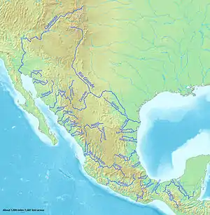 خارطة تظهر أنهار المكسيك، حيث يظهر نهر مصقلة (Balsas) في الجنوب الغربي