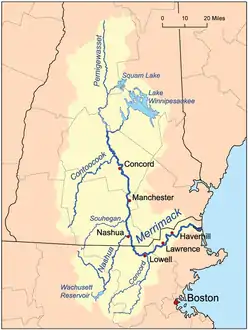 |CitationClass=تم تجاهله (مساعدة); تحقق من التاريخ في:|تاريخ الوصول=(مساعدة) - "Merrimack River Watershed". Official Website of the Massachusetts Executive Office of Energy and Environmental Affairs. مؤرشف من الأصل في 06 يناير 2018. اطلع عليه بتاريخ 15 نوفمبر 2017. الوسيط
