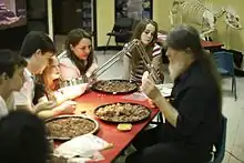 روبرت باكر (على اليمين) يقوم بالتعليم في متحف هيوستن للعلوم الطبيعية.