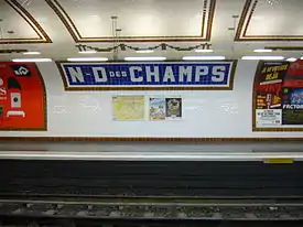 - مقالة «Notre-Dame-des-Champs (Paris Métro)»، من ويكيبديا الإنجليزية، الموسوعة الحرة .