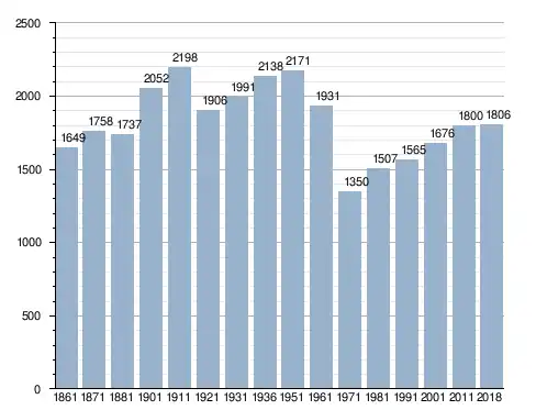 في سنة 1861 بلغ عدد السكان 1٬649 نسمة، وتطور العدد ليصل في سنة 2018 لـ 1٬806 نسمة.