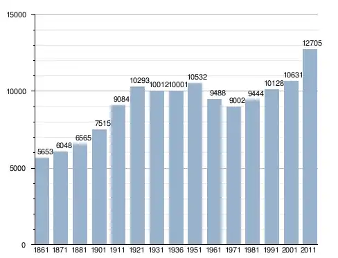 في سنة 1861 بلغ عدد السكان 5٬653 نسمة، وتطور العدد ليصل في سنة 2011 لـ 12٬705 نسمة.