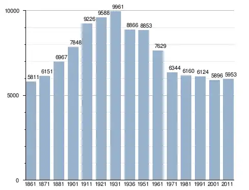 في سنة 1861 بلغ عدد السكان 5٬811 نسمة، وتطور العدد ليصل في سنة 2011 لـ 5٬953 نسمة.