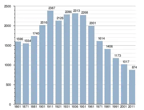 في سنة 1861 بلغ عدد السكان 1٬596 نسمة، وتطور العدد ليصل في سنة 2011 لـ 874 نسمة.
