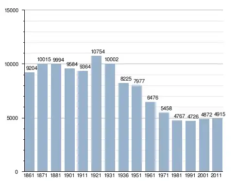 في سنة 1861 بلغ عدد السكان 9٬204 نسمة، وتطور العدد ليصل في سنة 2011 لـ 4٬915 نسمة.