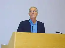 ![]() فينكلشتاين يتحدث في جامعة سفولك عام 2005 | |